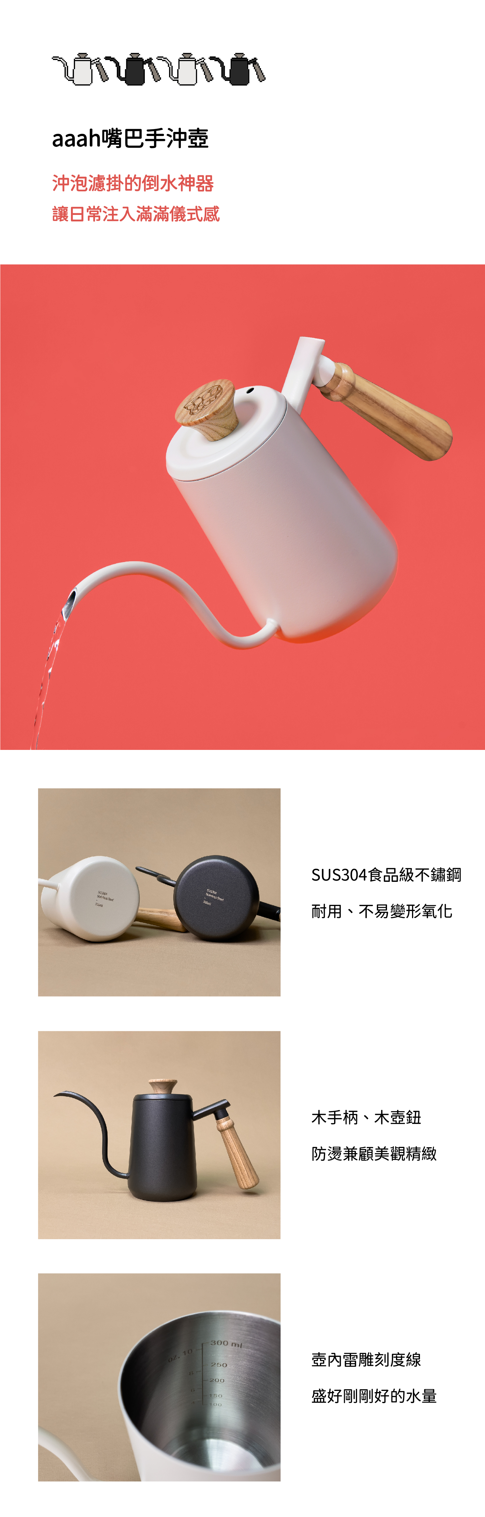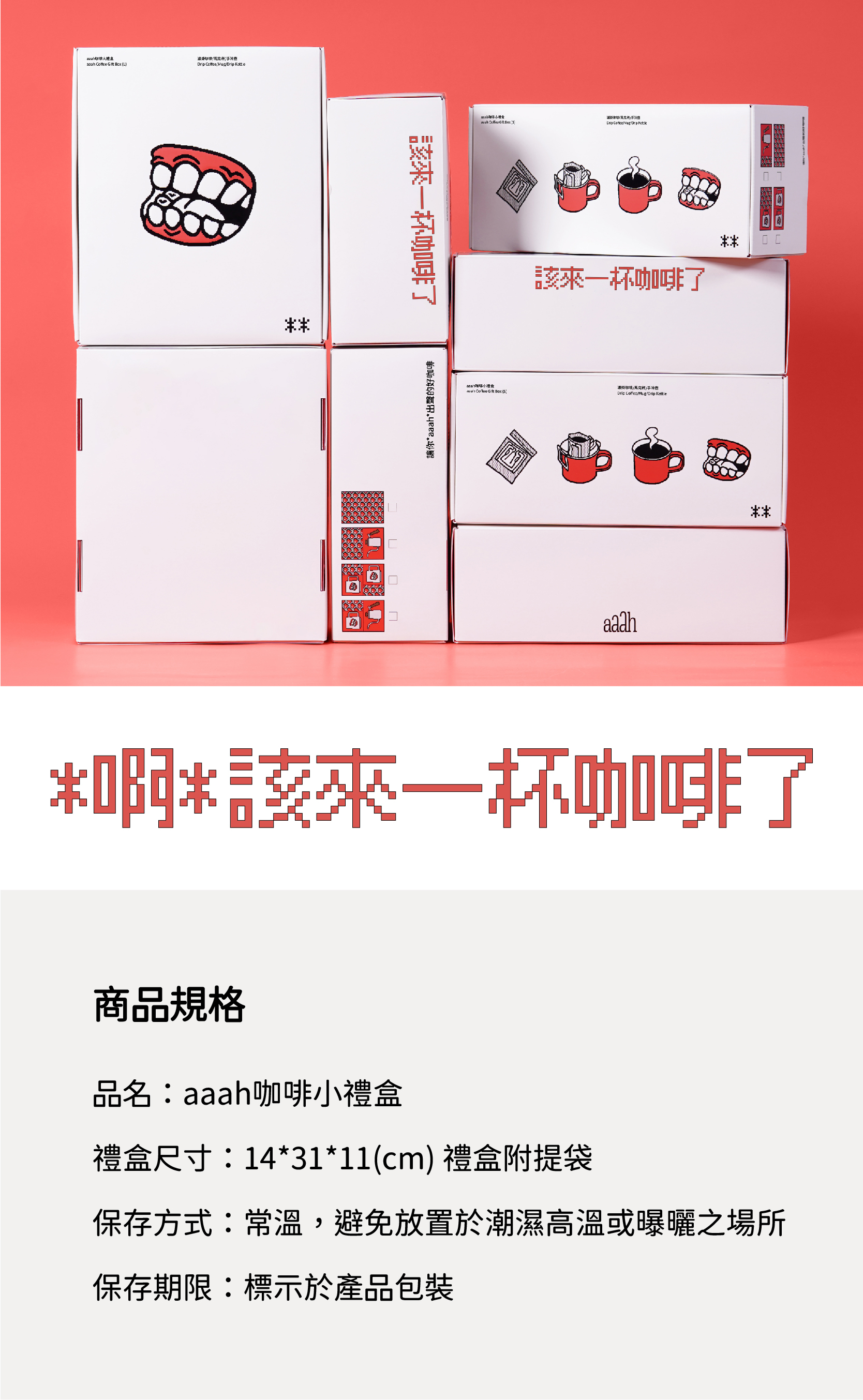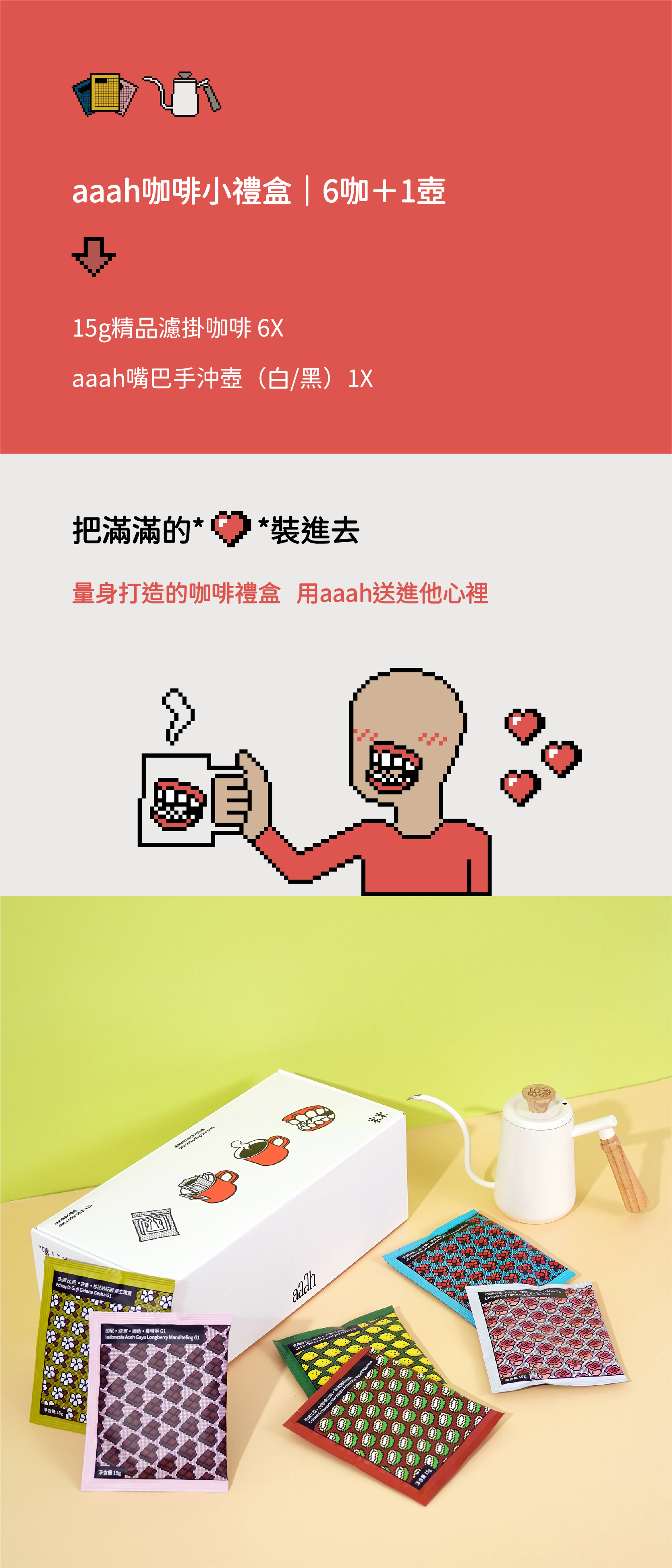內容物:aaah嘴巴手沖壺*1入、15g咖啡濾掛包*6入(口味任選1種)