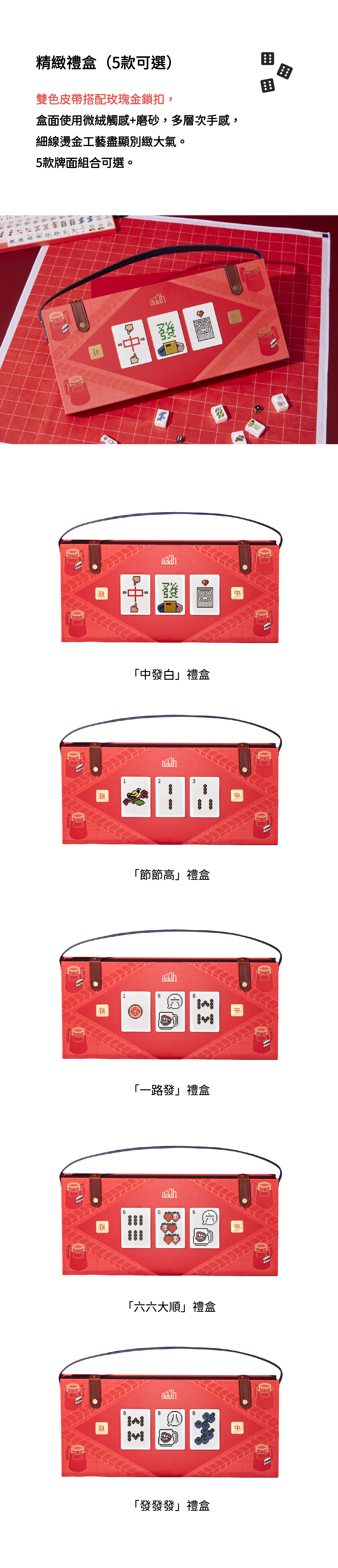 提供「發發發/六六大順/一路發/節節高/中發白」祝福禮盒款式