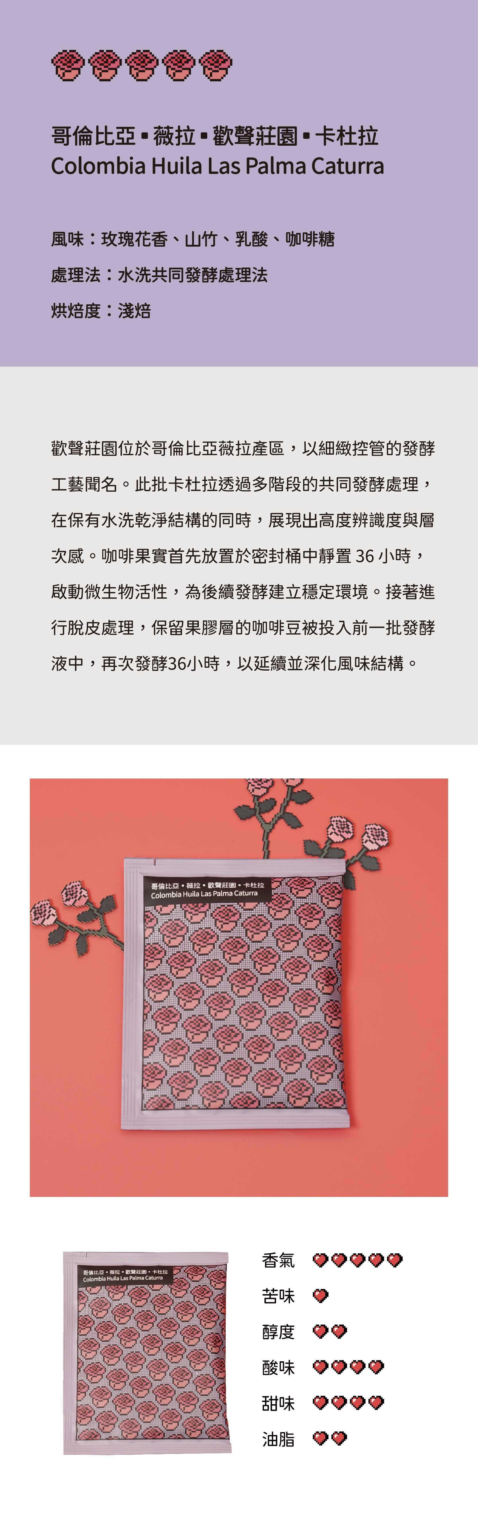 風味:玫瑰花香、山竹、乳酸、咖啡糖