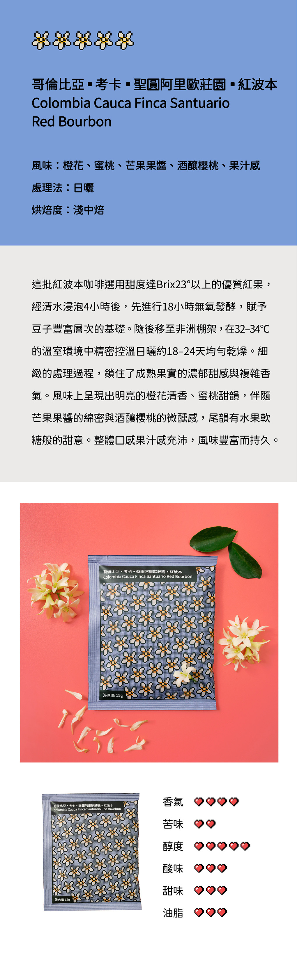 風味:橙花、蜜桃、芒果果醬、酒釀櫻桃、果汁感