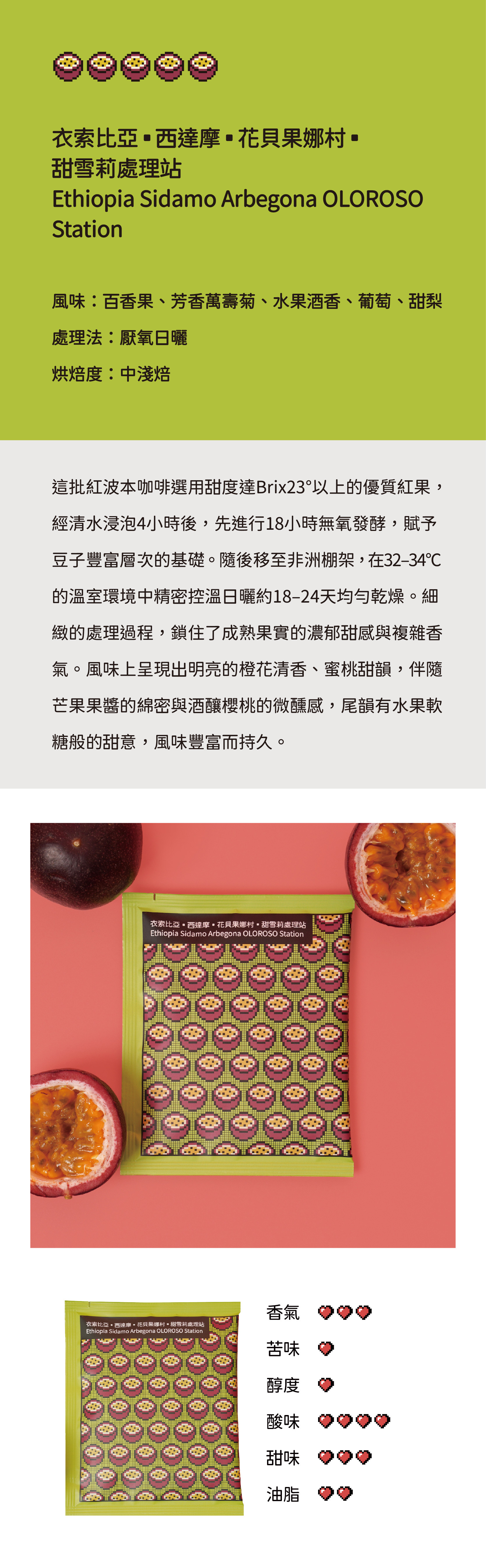 風味:百香果、芳香萬壽菊、水果酒香、葡萄、甜梨