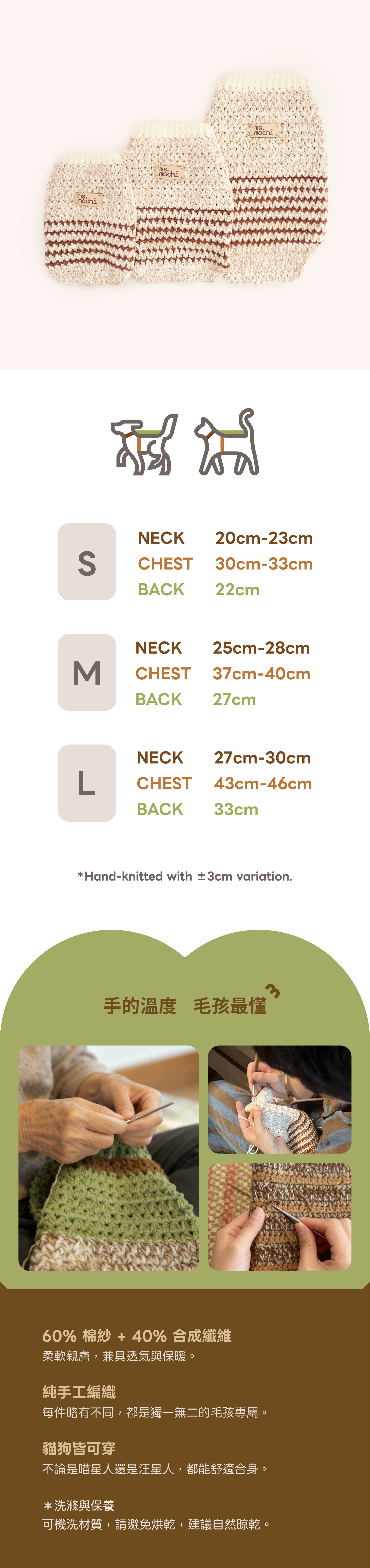 用耐磨又柔軟的毛線織成牽繩樣的小衫,